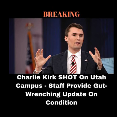 BREAKING: Pray for Charlie Kirk 🙏 He was just shot in the neck at a campus event.