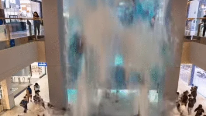 According to TikTok commentary, a failure—possibly a water leak or malfunction in the foam system—caused the structure to release its contents all at once, flooding walkways and escalator landings below unexpectedly TikTok+1.